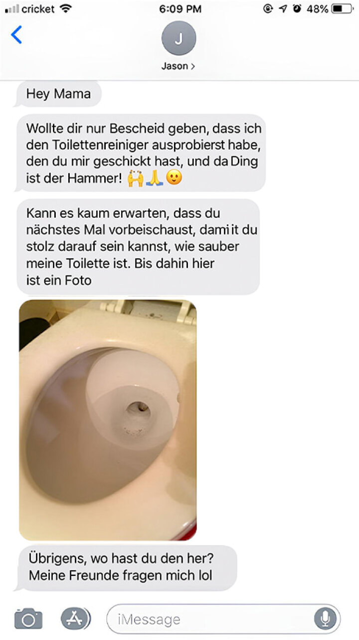 Seiner SMS nach zu urteilen, hat FizzClean Toilettenreinigungsschaum auch bei ihm gut funktioniert!!!
